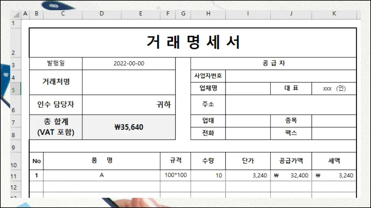 #거래명세서양식 #무료다운 #국세청서식 #세무서류 #증빙자료