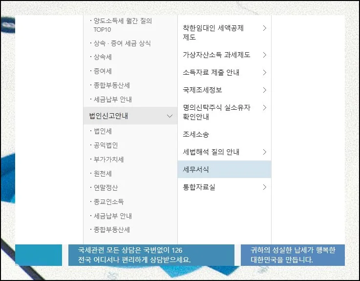 국세청 사이트에 접속하면 상단이나 측면에 여러 항목이 나타나요. 메뉴를 펼쳐서 살펴보세요. 아래쪽으로 내려가다 보면 세무서식이라는 메뉴를 찾을 수 있어요.