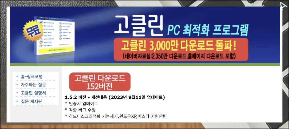 공식 사이트에 접속하면 무료 다운로드 안내를 즉시 확인할 수 있고, 몇 번의 클릭만으로 고클린 설치 파일을 받을 수 있습니다.
