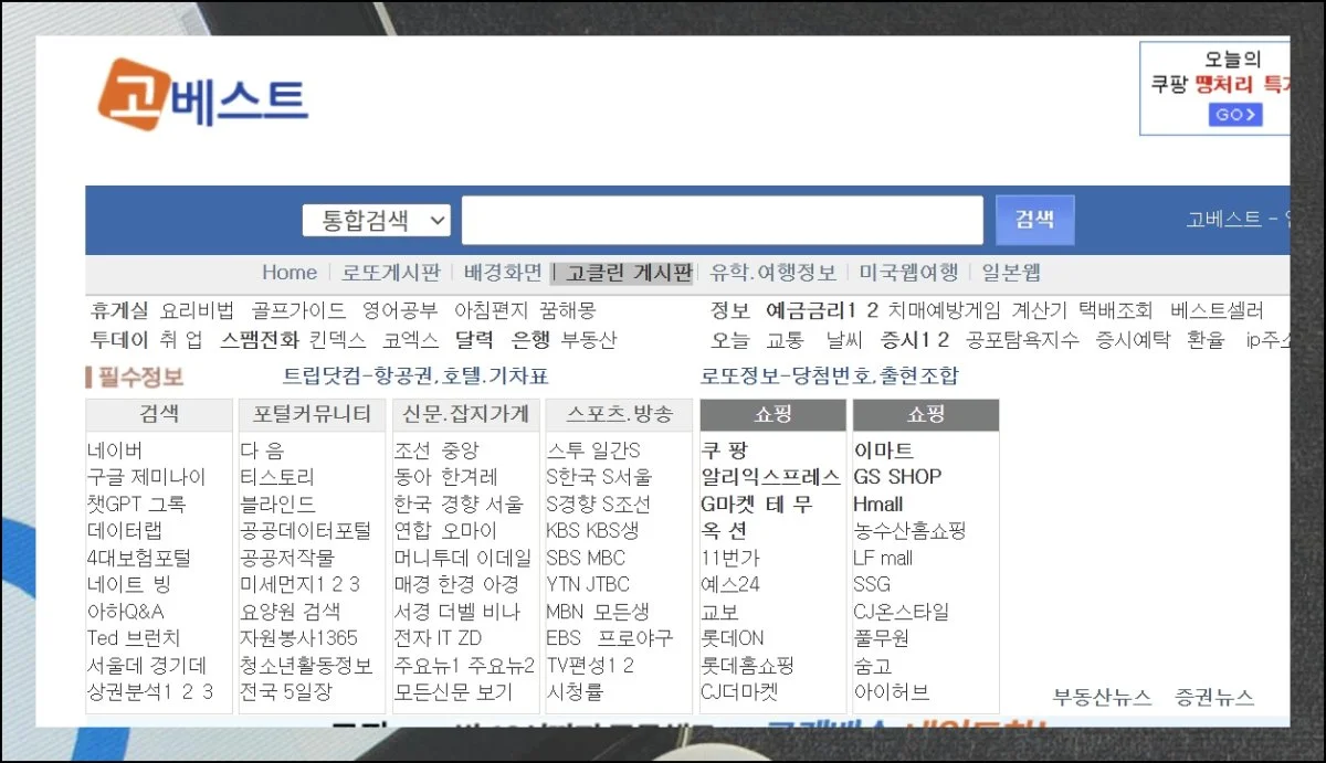 고베스트 사이트에는 생각보다 다양한 메뉴가 준비되어 있어요. 개인적으로 자주 활용하는 건 고클린 게시판과 로또 정보인데요.