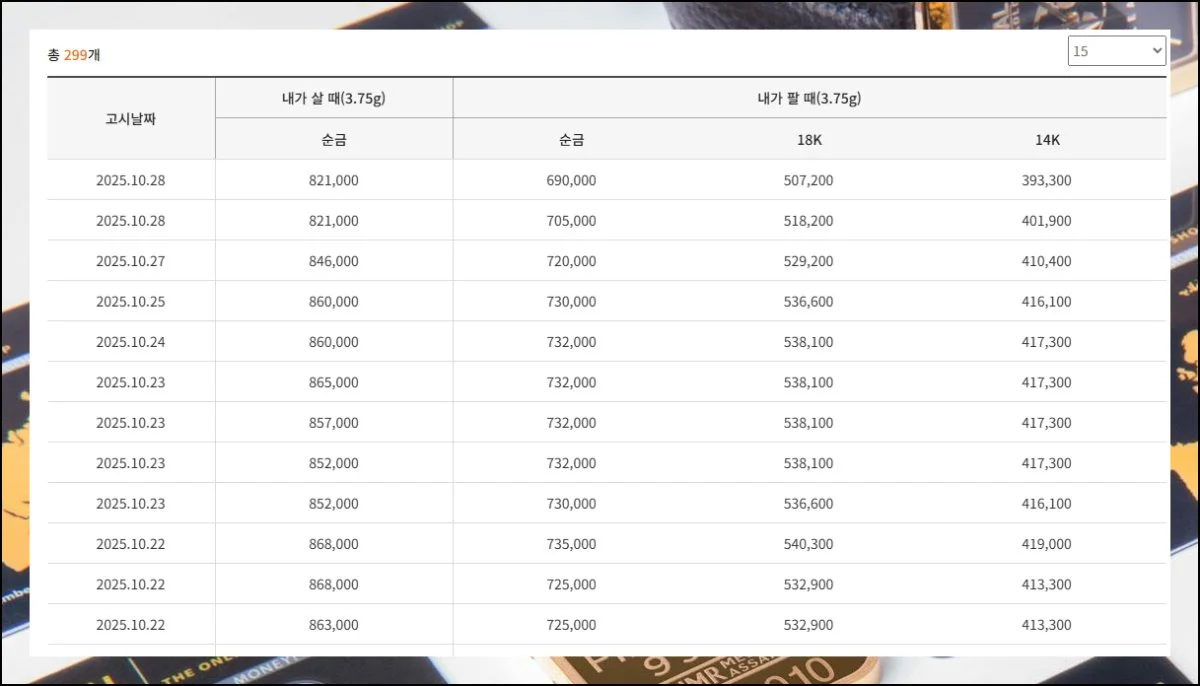 종로3가나 동묘역 근처 매장을 방문하기 전에 1돈가격팔때 가격을 미리 체크해보세요. 매매가 되는 금액이 낮은 날 팔러 갔다가 다시 발걸음을 돌려야 하는 상황을 피할 수 있습니다.