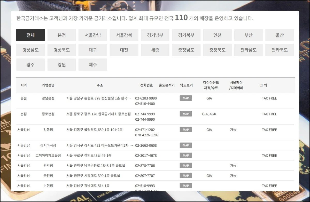 전국 여러 지역에 한국금거래소가 있어서 반드시 서울 종로나 동묘역까지 갈 필요는 없어요.