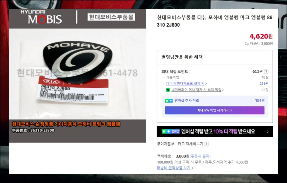 현대모비스 온라인 쇼핑몰을 통해 기아자동차 부품 구매가 가능합니다. 네이버 계정으로 회원가입을 진행하면 되니 절차가 복잡하지 않아요.
