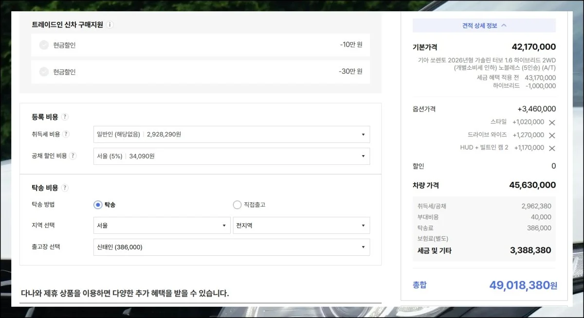 새 차를 알아볼 때 가장 궁금한 건 역시 실제 구매 비용이죠. 기본적인 가격표만 보고 결정하기엔 옵션과 할인 혜택에 따라 최종 금액이 크게 달라집니다.