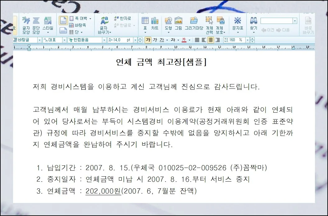 연체 금액에 대한 최고장 샘플 서식도 다운받을 수 있어요. 그 밖에도 계약해제 통보, 반품 요청, 손해배상 청구 시 활용 가능한 무료서식이 준비되어 있습니다. 필요한 템플릿을 찾아 활용해보세요.