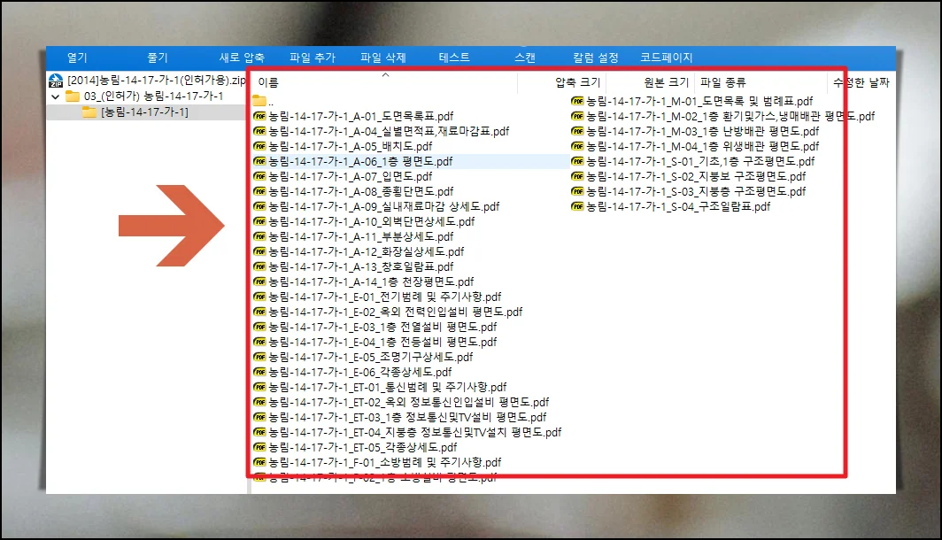 다운로드한 농어촌 표준설계도면 파일들은 용량을 줄이기 위해 ZIP 형태로 압축되어 제공됩니다. 압축 파일을 열어보려면 알집이나 반디집 같은 전용 해제 소프트웨어를 사용해야 해요.
