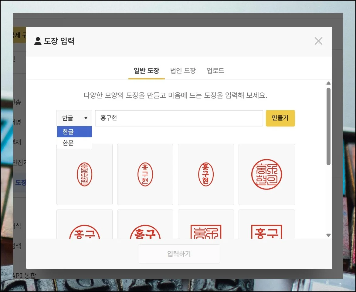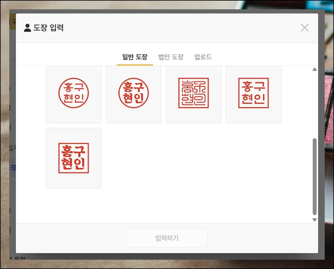 실제 인감을 가지고 계신 분들은 플랫폼에서 제공하는 스캔 기능을 활용해보세요. 실물을 스캔해서 투명 배경으로 변환하는 것도 가능하거든요.