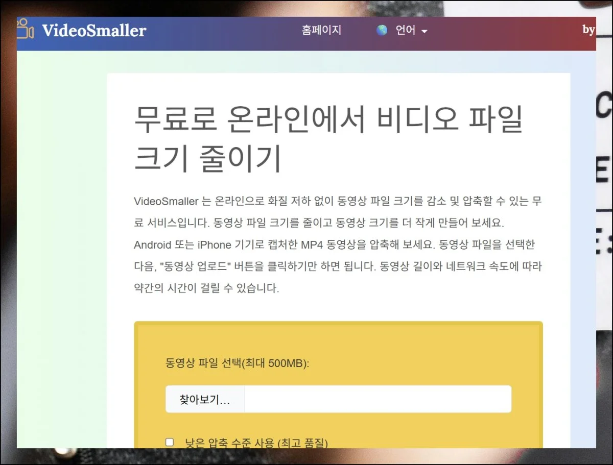 첫 화면에 있는 찾아보기 버튼을 눌러서 파일을 고르세요. 그다음 업로드만 하면 작업이 시작돼요.