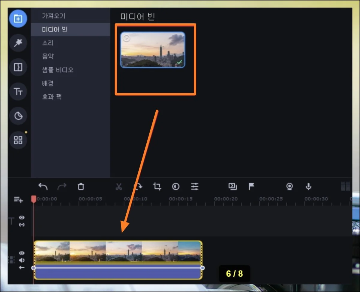 화질 높이기를 원하는 파일을 불러온 다음, 화면 하단의 작업 영역으로 드래그해서 옮겨놓으세요.