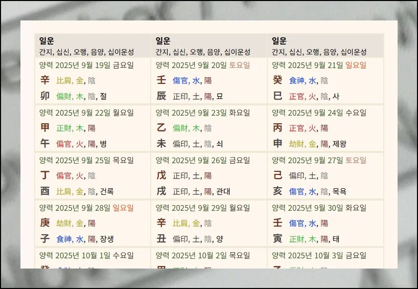 그래서 일일 운세는 큰 틀에서 보기에 미미한 영향을 준다고 할 수 있죠. 하지만 만세력에 대한 믿음이 깊은 분들에게는 매우 소중한 참고 자료가 될 수 있을 거예요.