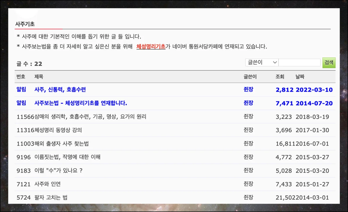 네이버 카페 사주수첩에서는 전문가가 직접 제작한 사주 해석 가이드를 제공해요. 기초 이론부터 고급 실전 기법까지 모든 과정을 무료로 학습할 수 있어요.