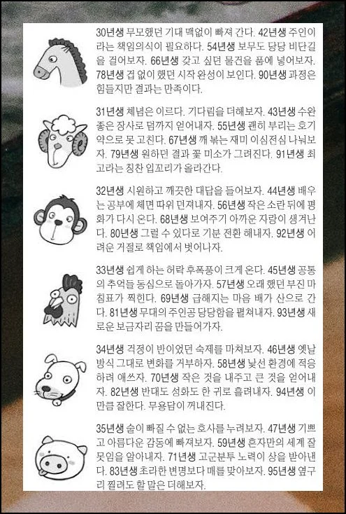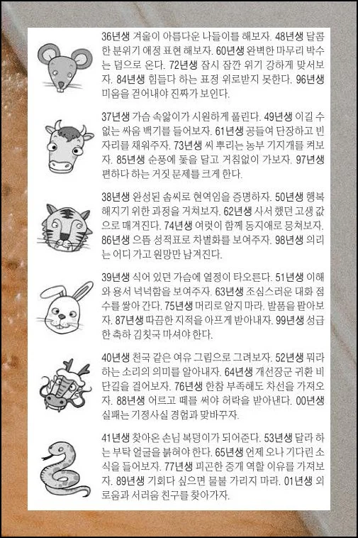 태어난 해에 따라 구분되어 있어요. 한 줄로 된 짧은 문장이에요. 하지만 그 속에 담긴 의미는 결코 가볍지 않습니다.
