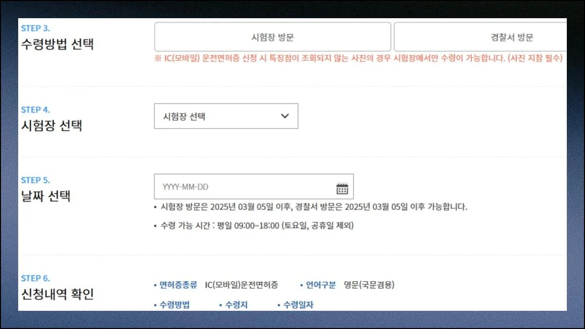 인터넷보다 직접 가는 방식을 선호하시나요. 준비물을 챙겨서 집 근처 시험장을 방문하시면 됩니다. 가까운 경찰서도 괜찮아요.