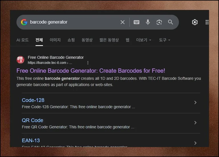 첫 번째로 해야 할 일은 웹사이트에 접속하는 거예요. 검색창에 BARCODE GENERATOR를 입력해보세요.