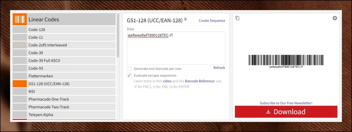 그중에서 GS1-128을 고르면 영문자와 숫자를 함께 넣을 수 있습니다. 많은 양의 정보를 하나의 코드에 통합하고 싶을 때 유용해요.