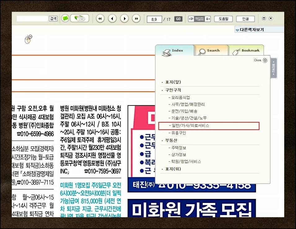 목차에서 항목을 클릭하세요. 관련 페이지로 바로 이동합니다. 구직 중이라면 효율적인 검색이 가능해요.