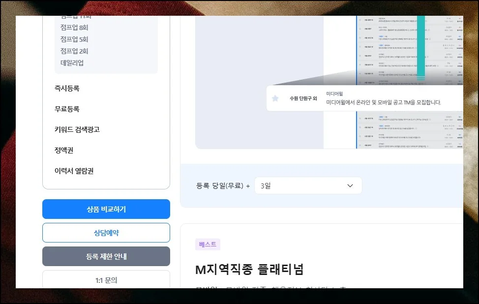 PC 버전과 모바일 버전에 동시 노출되어 더 많은 구직자들이 볼 수 있어요. 최대 3건까지 동시 게재가 가능하다고 하오니 구인구직 공고를 내고 싶은 분들을 참고해주세요.