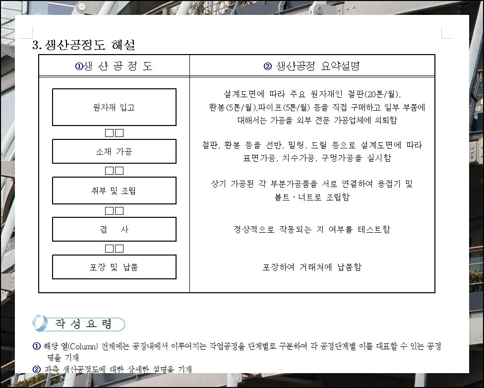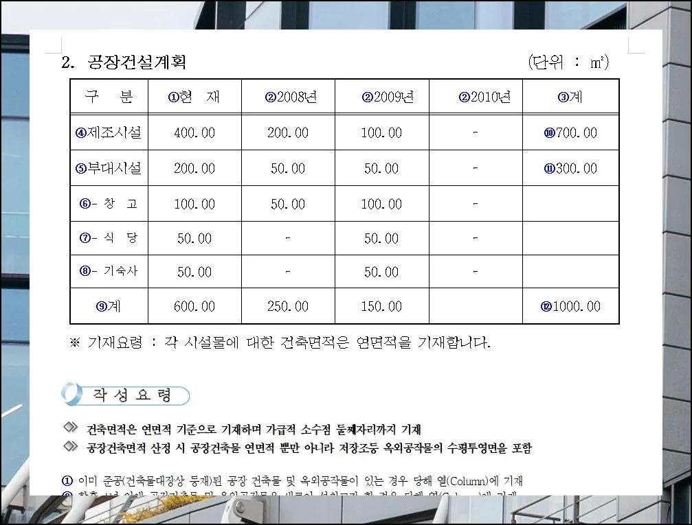 업종마다 사업계획서 구성 방식이 다르다는 건 기본이에요. 제조업의 경우 생산 품목과 공장 운영 현황, 설비에 대한 투자 계획을 중심으로 작성합니다.