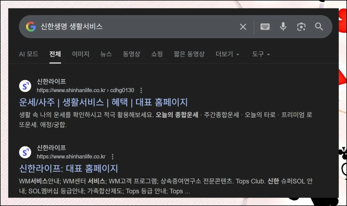신한생명 무료운세 바로가기, 평생운까지 한번에 보기