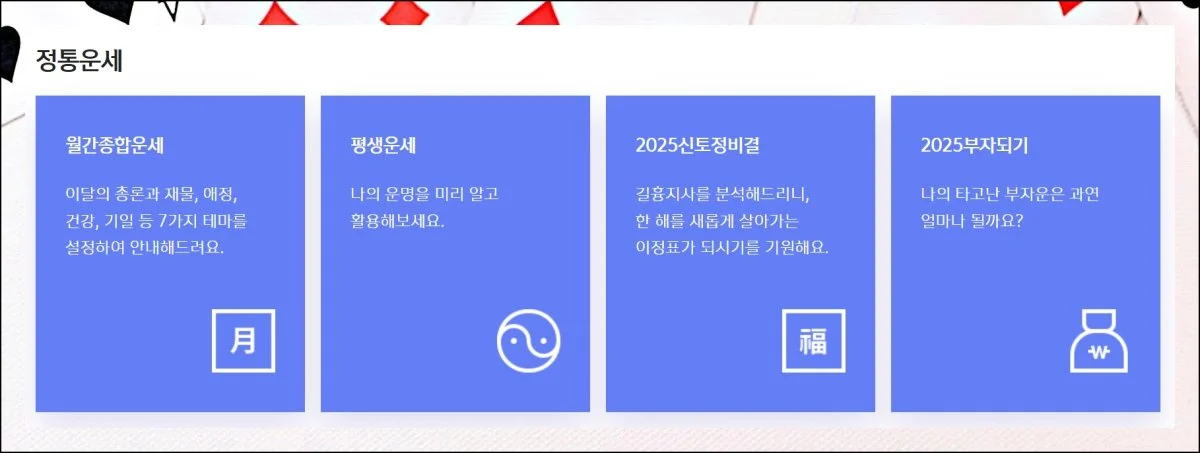 토정비결 항목에서는 한 해의 흐름을 상세히 살펴보세요.