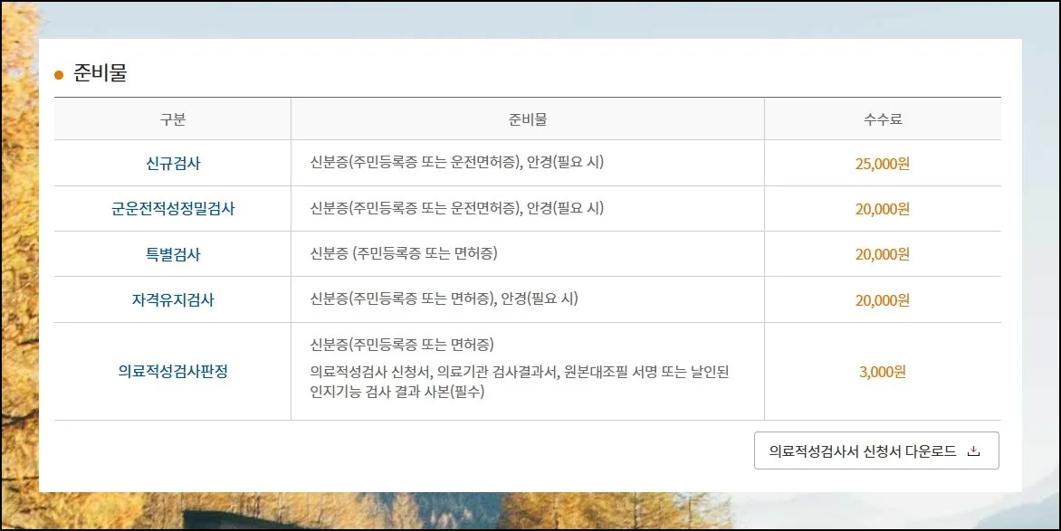 비용도 종류별로 차이가 있어요. 처음 신청하는 신규의 경우 25,000원을 내야 하고요. 의료적성검사판정은 3,000원으로 가장 저렴합니다.
