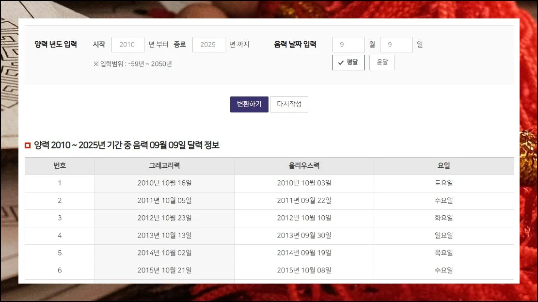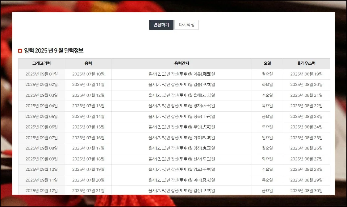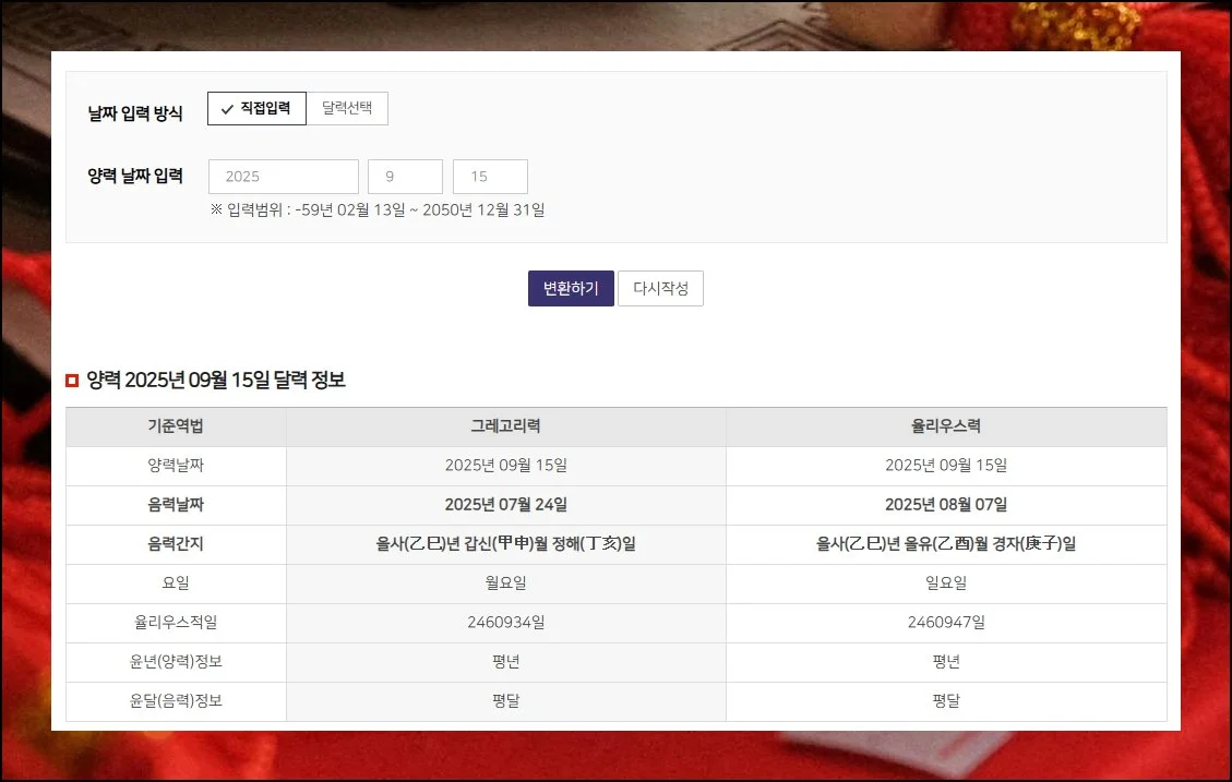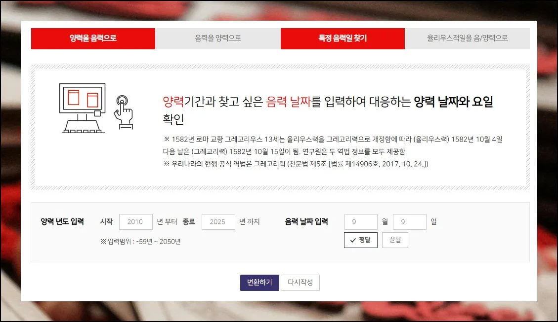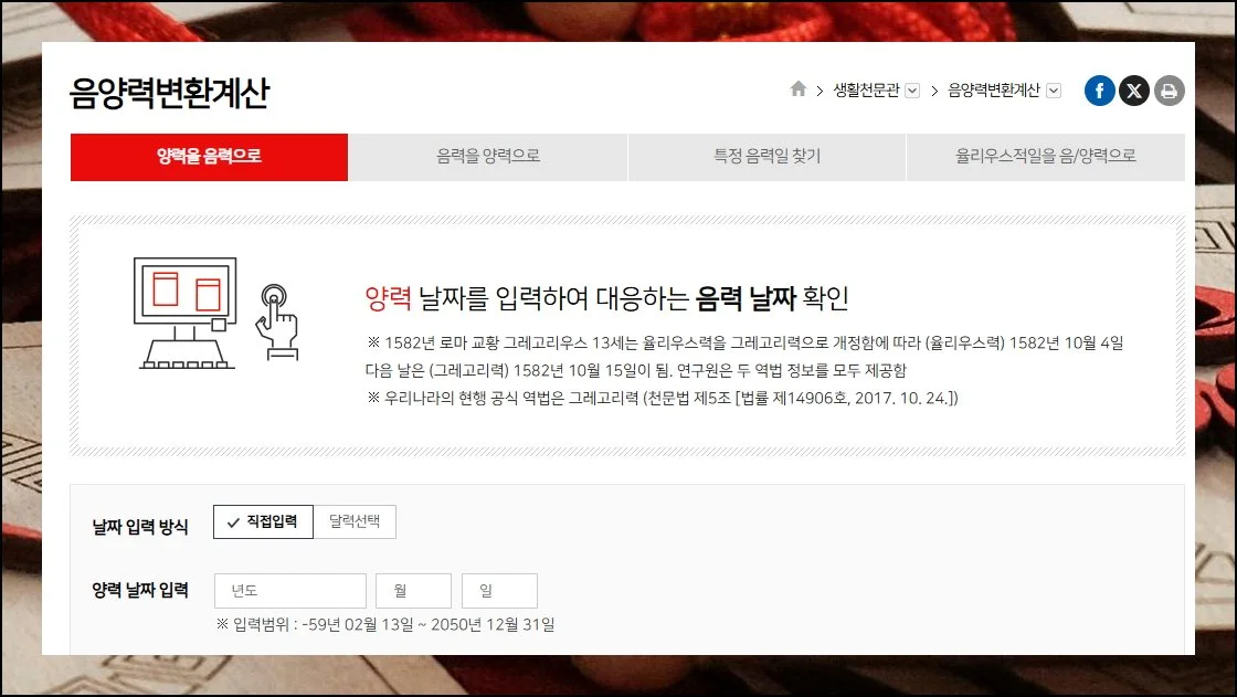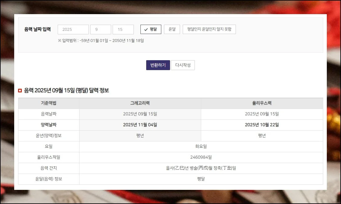 음력 양력 변환기 정확한 날짜 확인하기