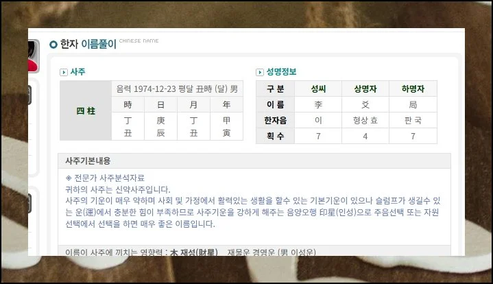 입력하신 사주와 현재 성명이 얼마나 잘 어울리는지 분석한 글이 있거든요.