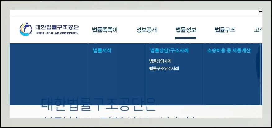 사이트 메인 화면을 보시면 법률정보라는 메뉴가 나타나요.