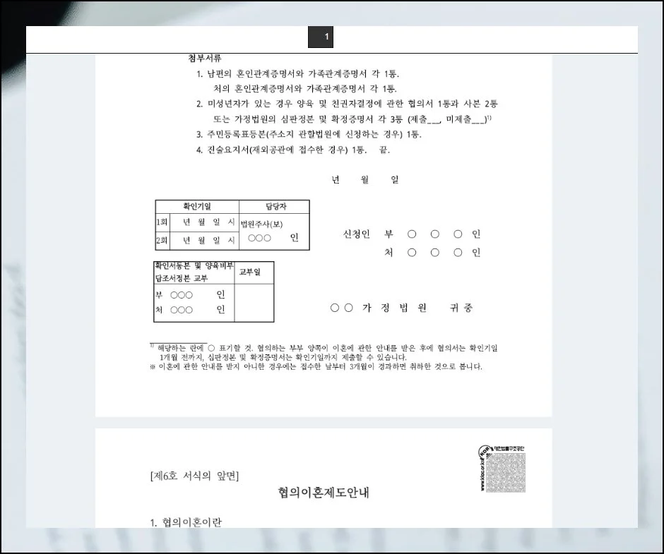#이혼서류 #협의이혼 #법률서식 #가정법원 #대한법률구조공단