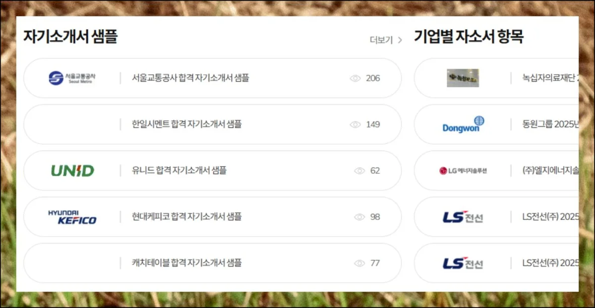 특히 성장과정이나 입사 동기 같은 항목별 검색 기능을 통해 자신에게 필요한 부분만 골라볼 수 있죠. 이런 예시 및 샘플 자료들을 참고하면 자기소개서 작성 방향을 명확하게 잡을 수 있습니다.