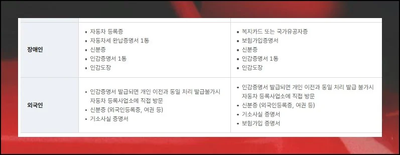 장애인이라면 복지카드나 국가유공자증을 추가로 준비해야 해요. 외국인의 경우는 조금 더 복잡한 편입니다.