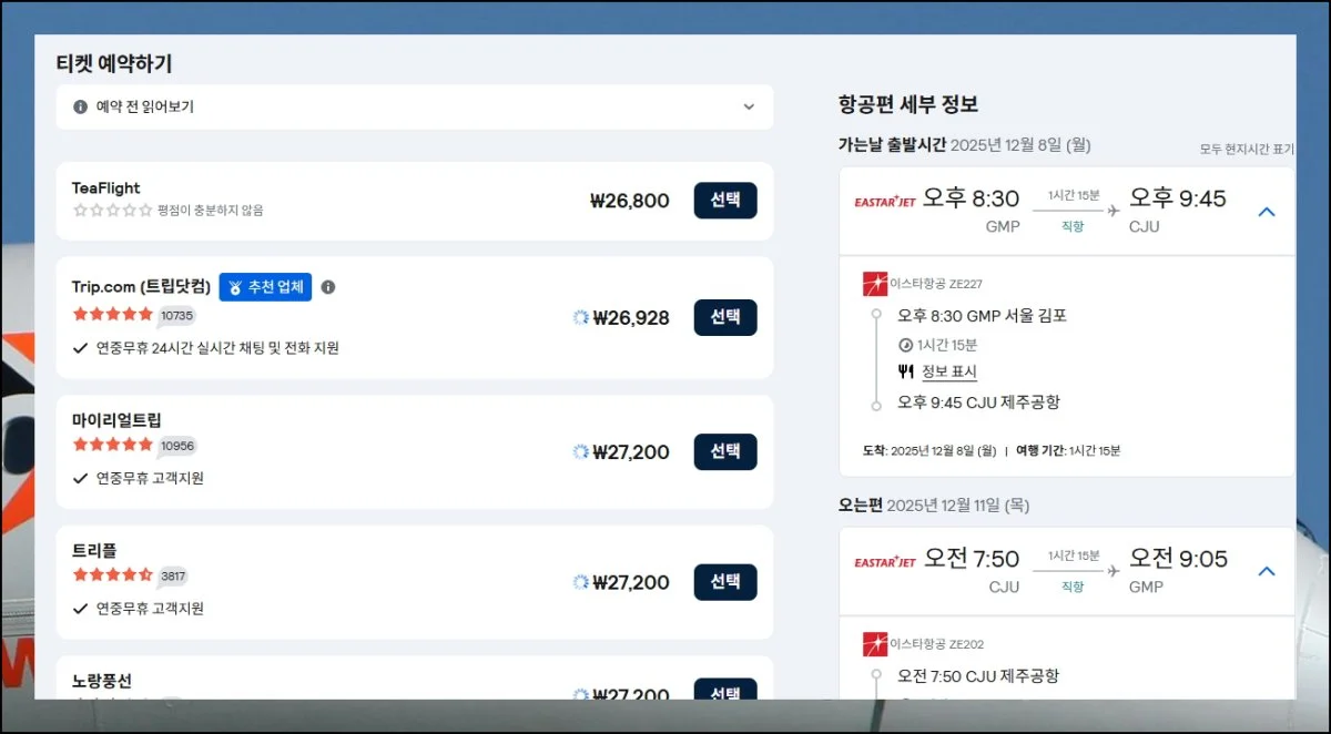 예매 플랫폼에 접속하면 지금까지 찾았던 제주 저가항공권 정보가 정확한지 다시 한 번 확인해보세요. 출발 시간, 도착 시간, 금액 등 모든 내용이 일치하는지 꼼꼼히 살펴봐야 해요.