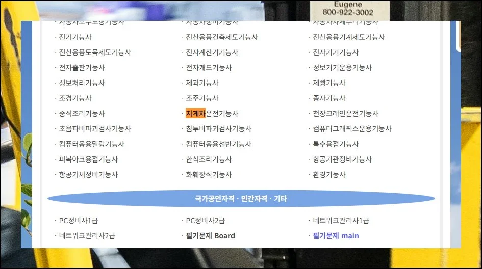 수많은 자격증 리스트가 분야별로 분류되어 있을 텐데요. 건축, 전기, 기계 등 카테고리별로 정돈되어 있는 경우가 일반적이에요.