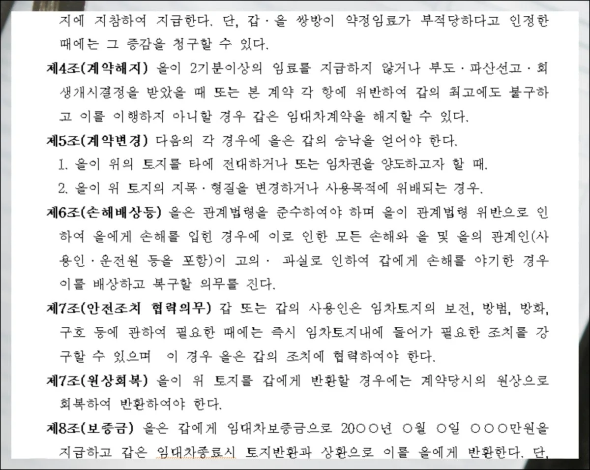 그 땅을 어떤 용도로 쓸 건지, 이용 기간은 얼마나 되는지 명시해야 해요. 월세나 연세 같은 임대료 납부 방식도 분명히 정해두세요.