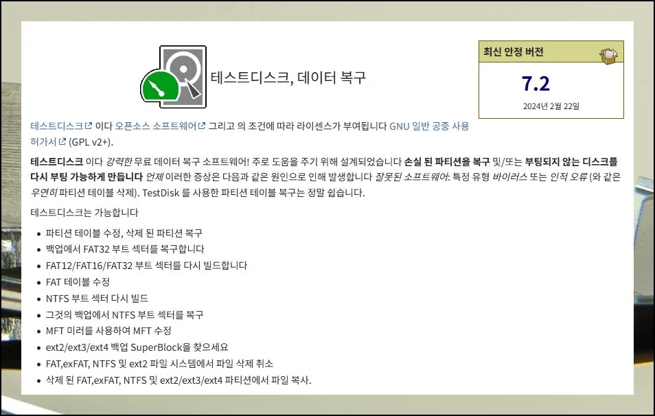 해당 프로그램을 사용하면 하드디스크는 물론이고, USB나 SD카드 같은 다양한 저장매체에서 발생한 문제 상황에도 대응할 수 있어요. 그러니 포기하지 말고, 한번 시도해보세요.