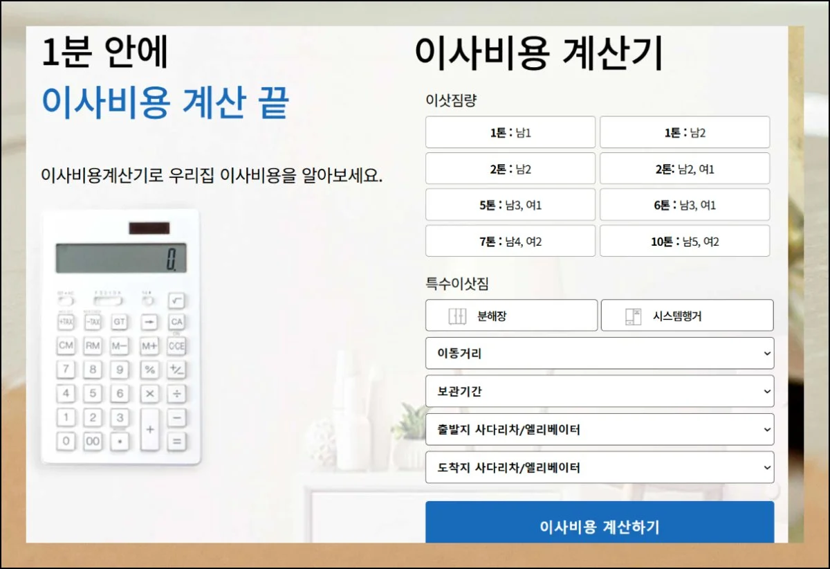 오늘은 신속하게 포장이사 예상 비용을 확인할 수 있는 유용한 계산 도구를 알려드렸습니다.
