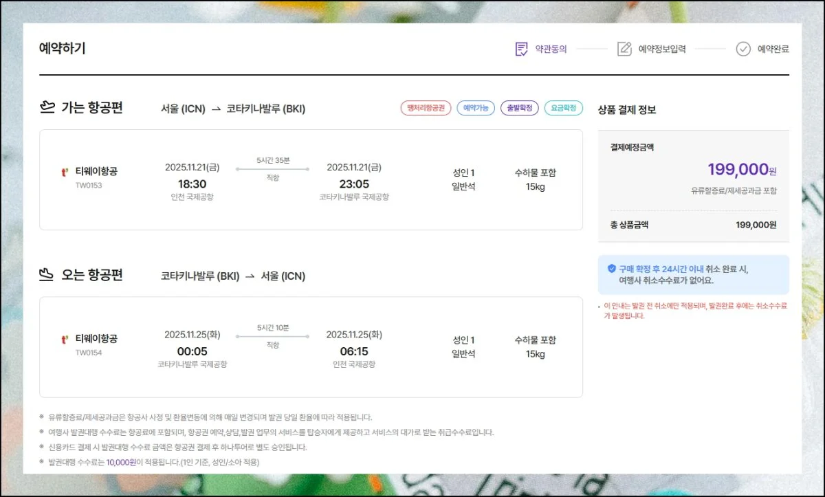 하나투어 플랫폼에서 항공권 예약하는 절차는 복잡하지 않아요. 화면 안내를 따라가면서 요구하는 정보만 입력하면 되거든요.