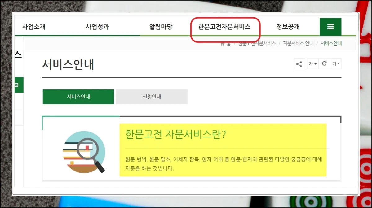 원문 해석부터 이체자 판독까지 다양한 분야의 전문 자문을 받을 수 있어요.