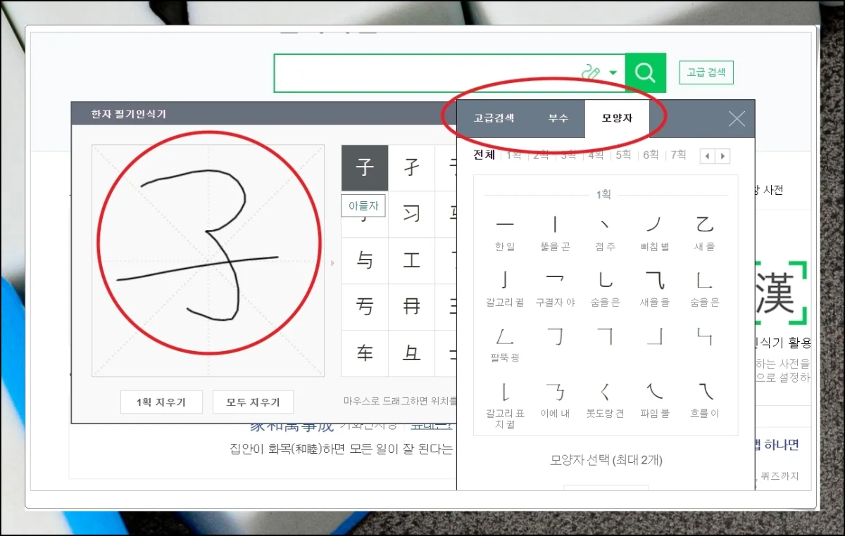 네이버 문자 사전의 가장 큰 매력은 필기 인식 기능입니다. 모르는 글자를 직접 써서 입력할 수 있어요.