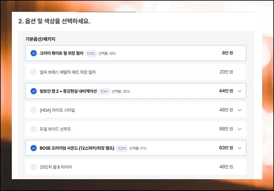 옵션을 고를 때는 특별히 조심해야 해요. 차량이 출고되고 나면 어떤 변경도 할 수 없기 때문입니다.