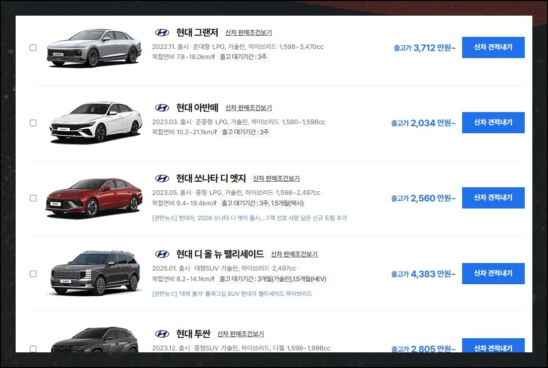 #현대차종류 #자동차견적 #차량할인 #신차구매 #온라인견적