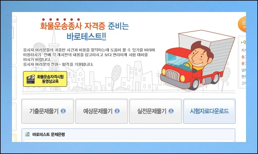 반복적으로 기출문제를 푸는 것으로는 한계가 있다고 느끼시나요. 화물운송종사 자격시험을 준비하는 분들을 위한 동영상 교육 프로그램도 준비되어 있어요.