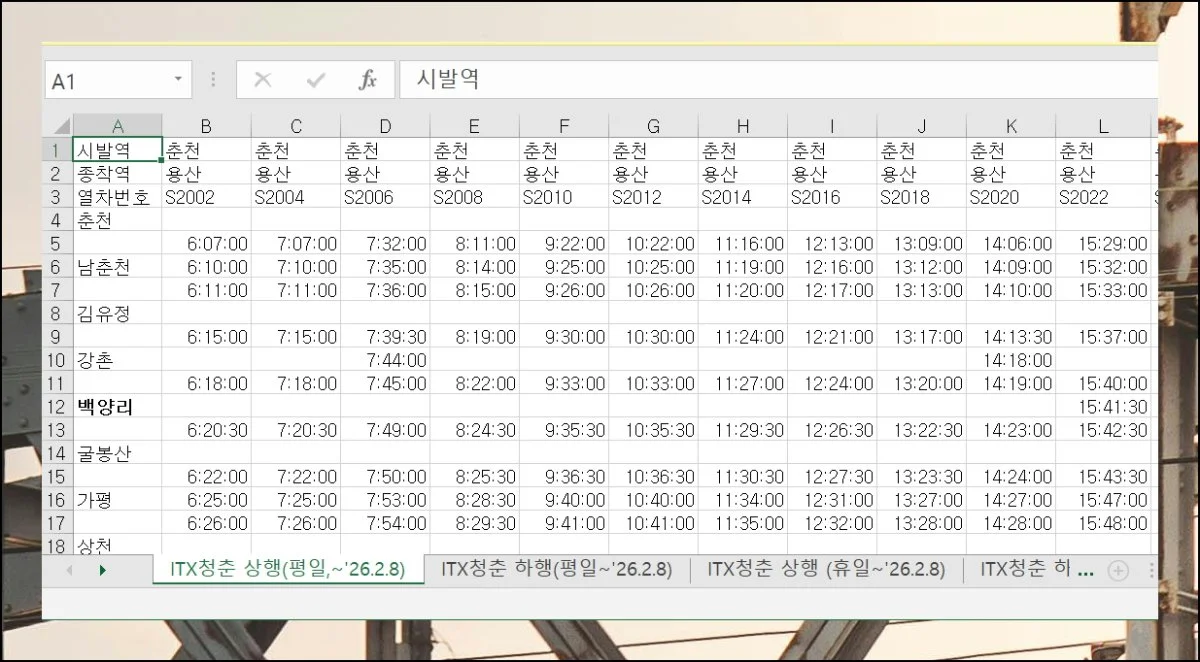#ITX청춘열차 #레츠코레일 #기차여행 #춘천여행 #열차시간표