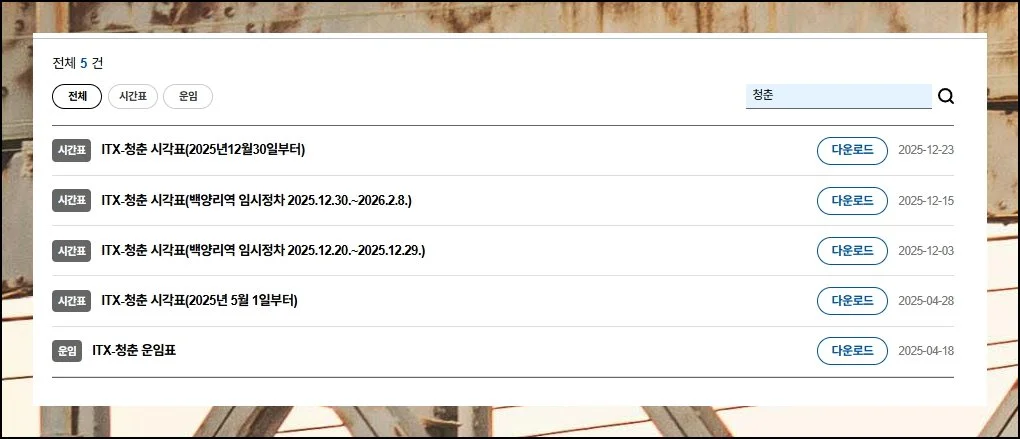 ITX 운행 노선에 대한 상세 내용도 수월하게 검색할 수 있죠.