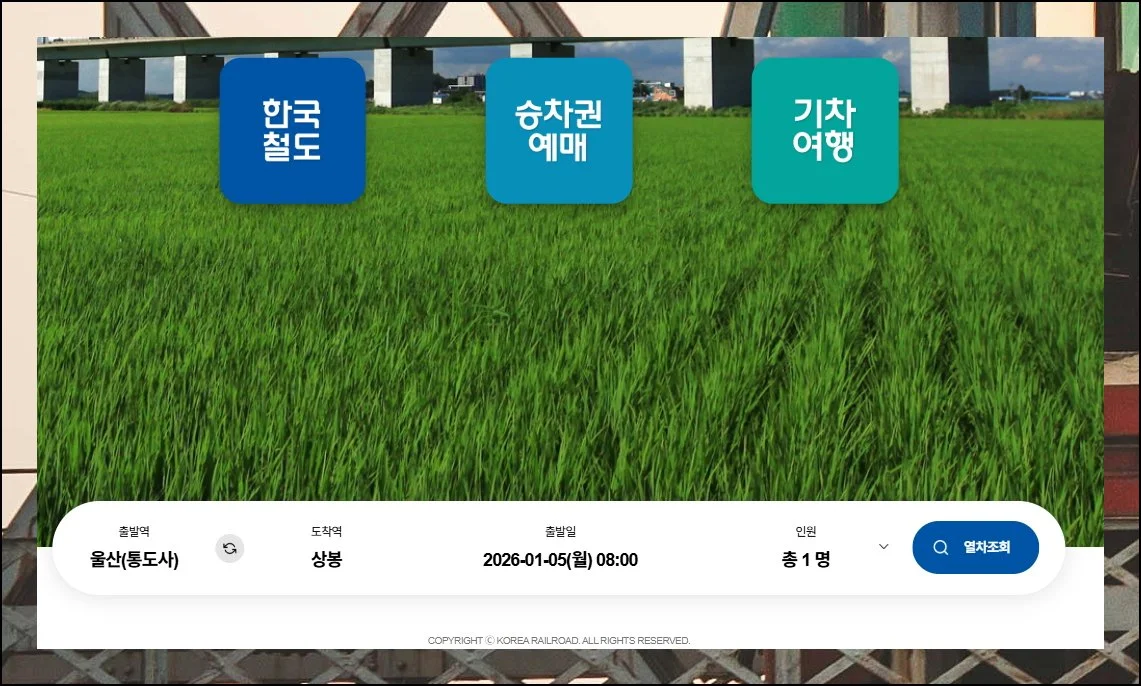 예매 방법은 일반 기차표 구매와 동일한 절차로 진행됩니다. ITX청춘열차 노선에 포함된 역 중에서 원하는 곳을 선택하면 돼요.